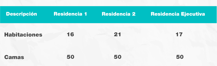 Las Residencias Deportivas de nuestra institución cuenta con 3 áreas con capacidad total para 150 personas, distribuidas así: